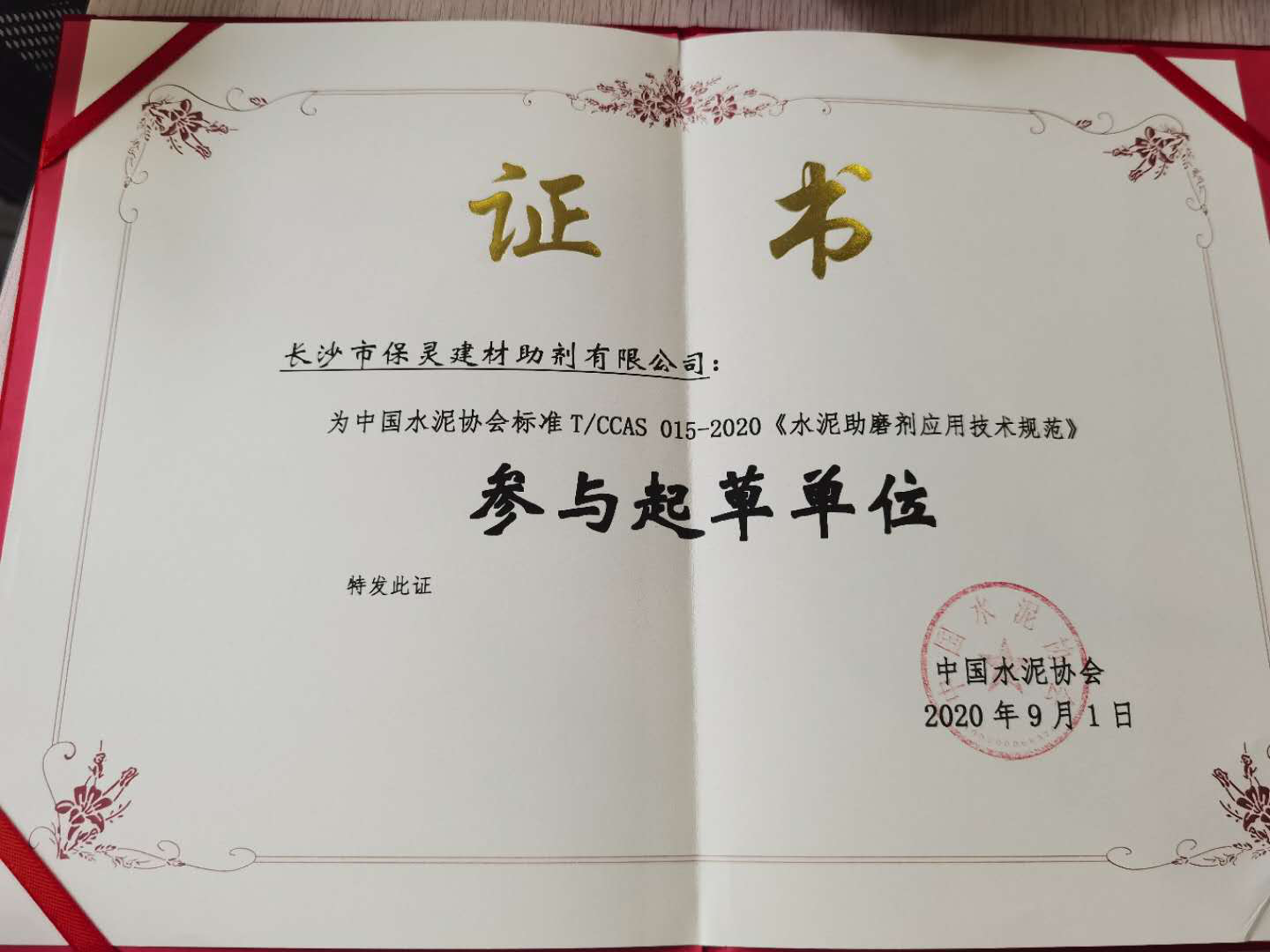 我司在為中國水泥協(xié)會(huì )標準T/CCAS 015-2020《水泥助磨劑應用技術(shù)規范》做出重要貢獻,被授予:參與起草單位
